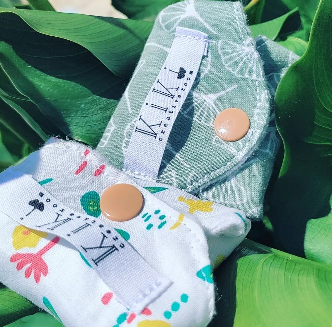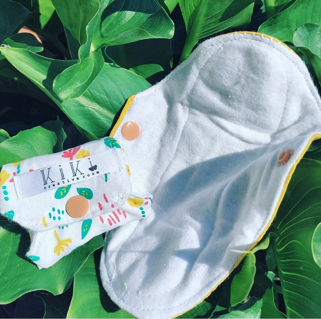 Assorbenti lavabili in cotone 100% organico nella parte esterna, cotone o bambù a contatto con la pelle, due strati di cotone interno e uno strato di PUL (strato impermeabile usato anche nei pannolini lavabili per i bimbi). Dotato di due bottoncini di plastica