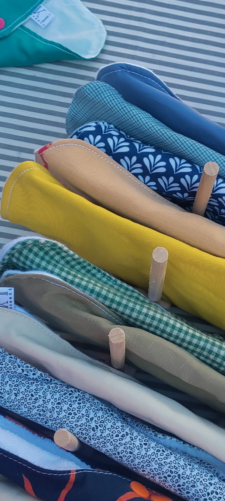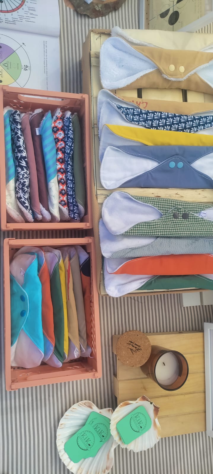 Assorbenti lavabili in cotone 100% organico nella parte esterna, cotone o bambù a contatto con la pelle.